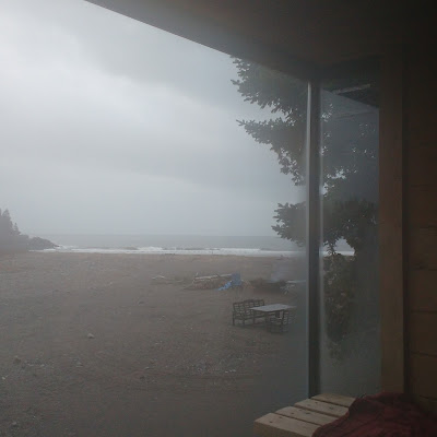 After we changed into bathing suits and comfy robes, we hit the steaming hot tub which was more like a small swimming pool. It was a cool rainy April day, but we were cozy and relaxed in the steamy water. After that we cooled off in the ocean air and made our way to the sauna (pic above). After the sauna you are supposed to jump into the bay or immerse yourself in the waterfall, but we did not indulge. A splash of cold water and the cool Fundy air was enough.