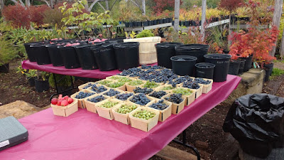 I'm not sure if it was the sun or the time of day, but all of a sudden things were happening at the nursery! There was apple cider making, music by a live band, and displays of grapes and apples!